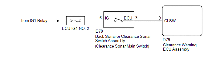 When the clearance sonar main switch is turned on, an on signal is sent to the clearance warning ECU assembly. The intuitive parking assist system operates according to this signal.